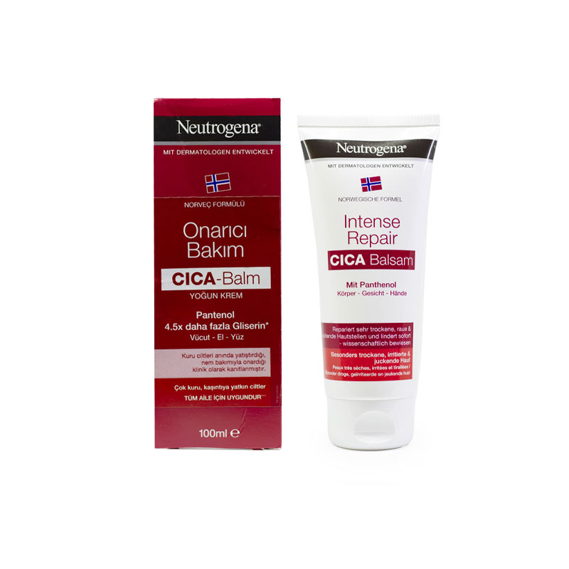 Neutrogena Repair Care CICA-Balm Intensive Creamبالم ترمیم کننده عمیق پوست مدل CICA نوتروژینا حجم 100 میل یک محصول فوق العاده برای ترمیم و التیام بخشی پوست است. این بالم پوست های خشک و ترک خورده و آسیب دیده را نرم و مرطوب کرده و از پوست محافظت می کند. سیکا بالم ترمیم کننده عمیق پوست نیتروژینا حاوی پانتنول و گلیسیرین بوده و پوست را تغذیه می کند. این بالم به مدت 6 ساعت ماندگار بوده و سبب آرامش بخشی و تسکین پوست می شود. بالم ترمیم کننده سیکا Neutrogena دارای خاصیت ضد التهاب است و خشکی و خارش و التهاب پوست را بهبود می دهد. این بالم برای پوست صورت، دست و بدن مناسب بوده و برای بزرگسالان و کودکان بالای 3 سال قابل استفاده می باشد.